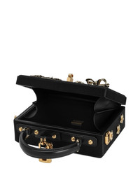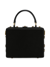 Dolce Box tote bag Highlights - Black - Gold-tone embellishment - Top handle - Decorative applique - Twist-lock fastening - Stud detail Made in Italy Composition Outer: Viscose 55%, CALFSKIN 20%, Silk 20%, Poplar Plywood 5% SIZE & FIT Measurement DEPTH 2.75 in(7 cm) HEIGHT 5.7 in(14.5 cm) WIDTH 7.48 in(19 cm)