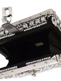 Jacquard Dolce Box top-handle bag Highlights - White - Jacquard - Rhinestone embellishment - Palladium-plated hardware - Adjustable detachable shoulder strap - Padlock fastening - Main compartment - Internal slip pocket - Internal logo plaque Made in Italy Composition Outer: Cotton 64%, Silk 26%, Calf Leather 10% Lining: Calf Leather 95%, Wood 5%