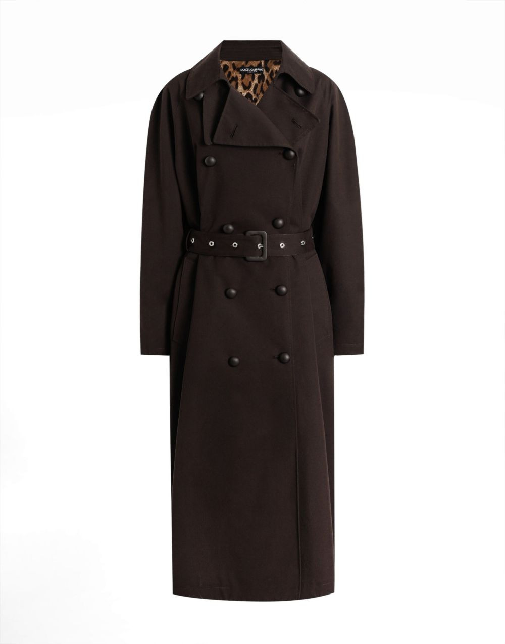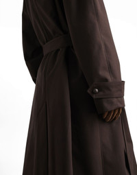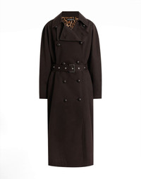 double-breasted belted coat Highlights - Dark brown - Double-breasted fastening - Belted waist - Long sleeves - Buttoned cuffs Made in Italy Composition Lining: Polyester 97%, Elastane 3% Outer: Polyester 76%, Polyamide 24% Washing instructions Read Manufacturer Guidelines
