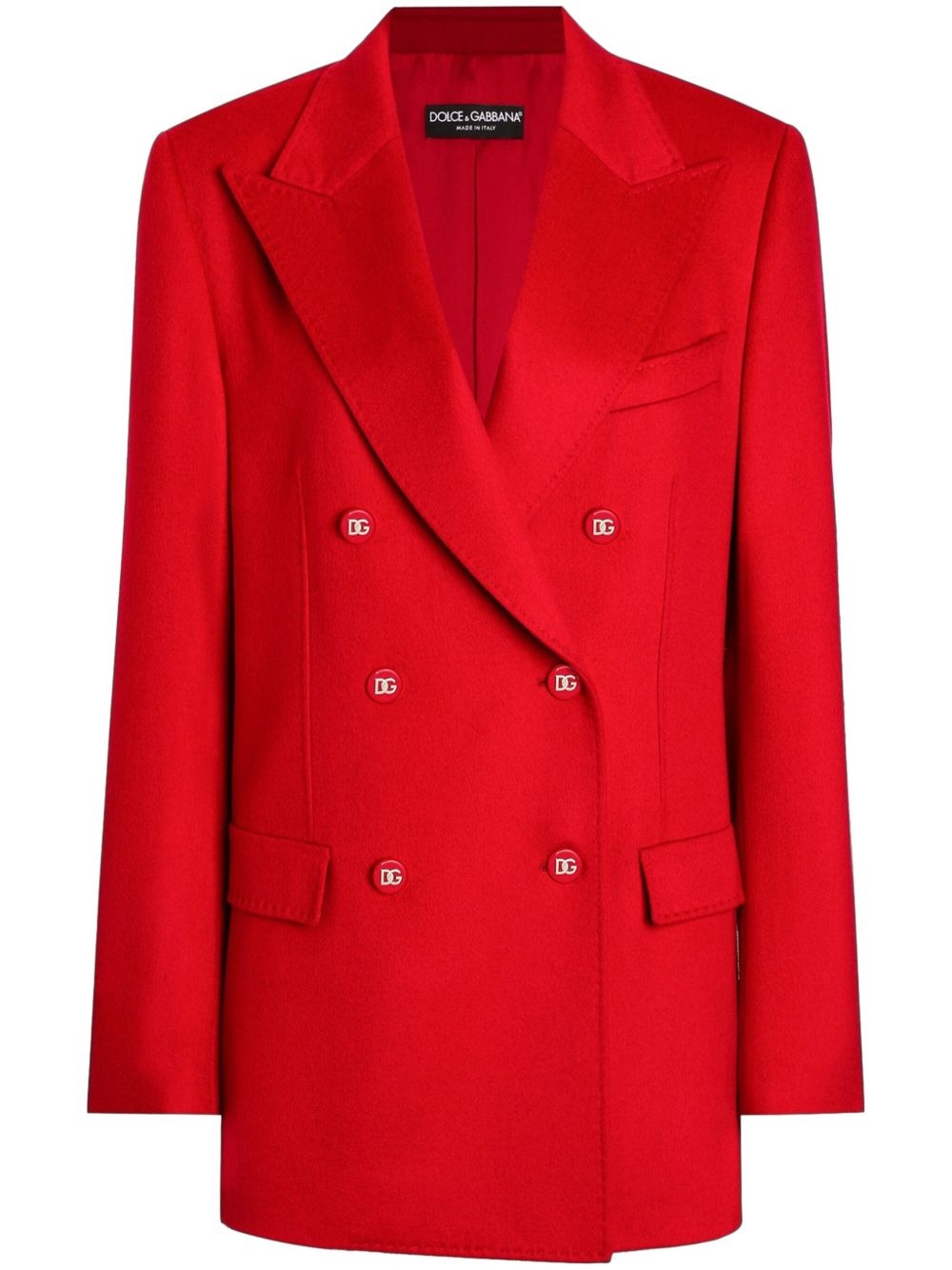 double-breasted blazer Highlights - Scarlet red - Front button fastening - Chest welt pocket - Two side flap pockets - American rear vent Made in Italy Composition Outer: Cashmere 100% Lining: Silk 100%