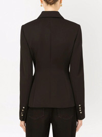 Dolce double-breasted wool blazer Highlights - Black virgin wool double breasted blazer from dolce & gabbana featuring double-breasted button fastening, peak lapels, long sleeves, buttoned cuffs, two front flap pockets and straight hem. Made in Italy Composition Lining: Polyester 97%, Spandex/Elastane 3% Outer: Virgin Wool 100% SIZE & FIT Measurement SLEEVE LENGTH 24.01 in(61 cm) LENGTH 24.8 in(63 cm)