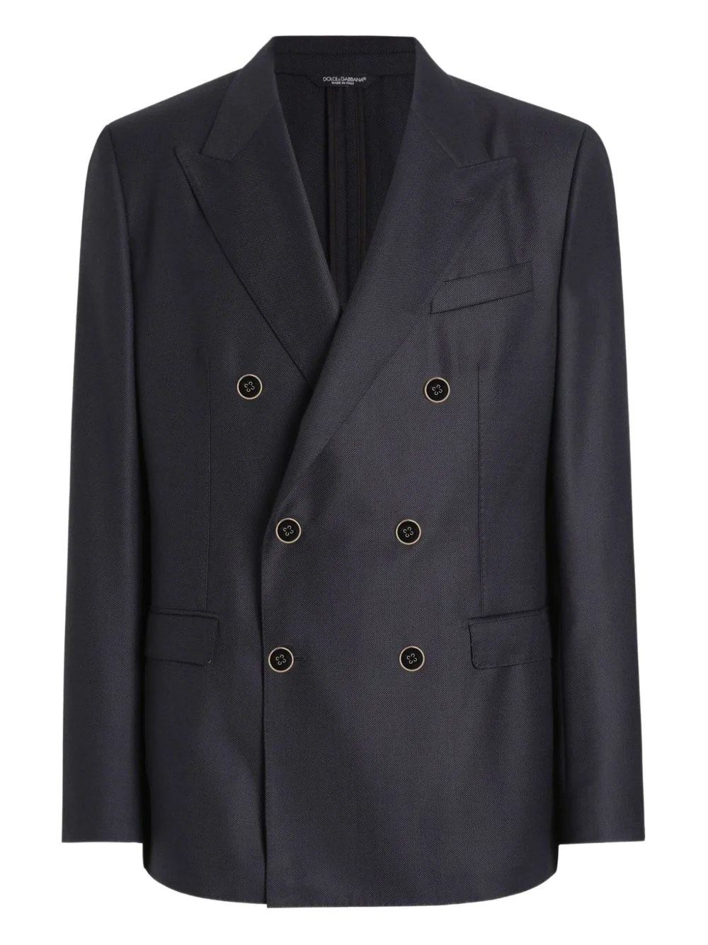 double-breasted buttoned blazer Highlights - Dark blue - Double-breasted - Button fastening - Notched lapels - Flap pockets Made in Italy Composition Outer: Virgin Wool 100% Lining: Silk 100% Washing instructions Read Manufacturer Guidelines