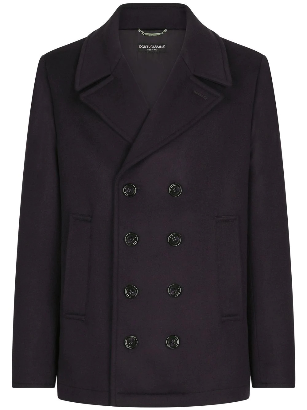 double-breasted cashmere peacoat midnight blue cashmere felted notched lapels double-breasted button fastening long sleeves buttoned cuffs two side slit pockets Made in Italy Composition Lining: Rayon 100% Outer: Cashmere 100%