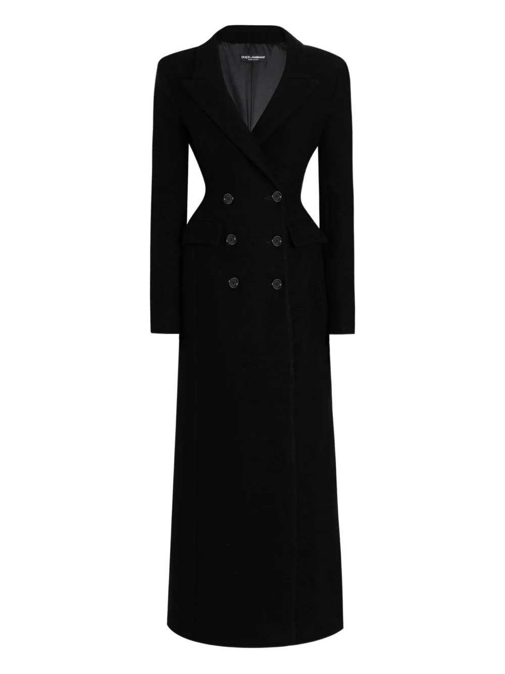 double-breasted coat Highlights - Black - Double-breasted fastening - Long sleeves - Centre-back vent Made in Italy Composition Lining: Silk 92%, Elastane 8% Outer: Virgin Wool 100% Washing instructions Read Manufacturer Guidelines