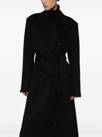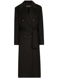 Double-breasted cashmere baize coat with belt