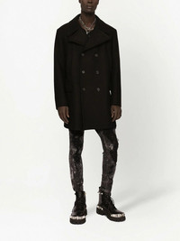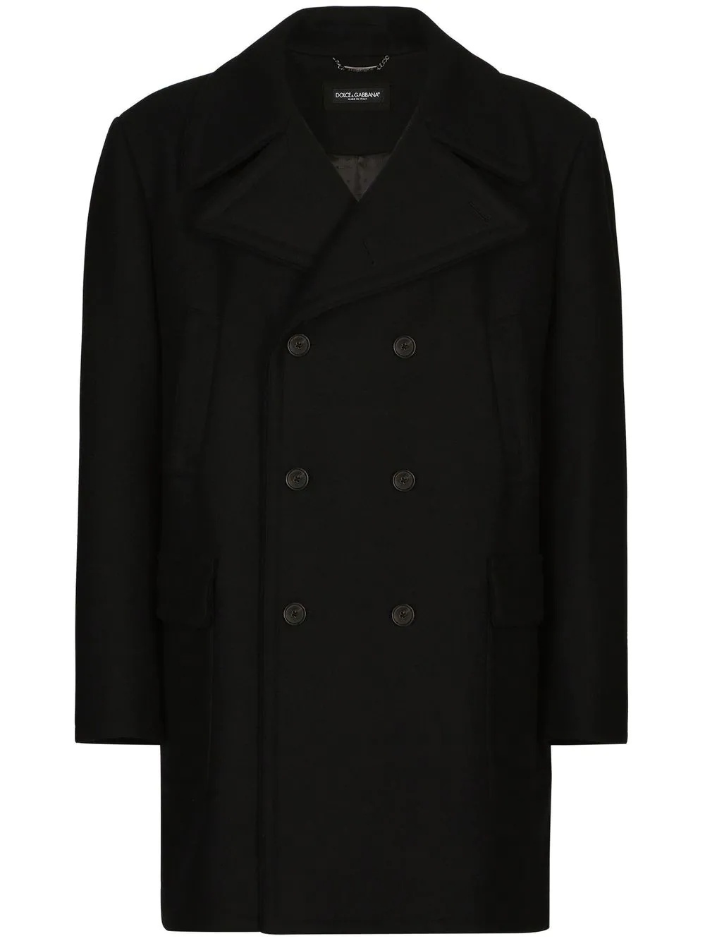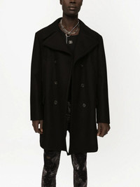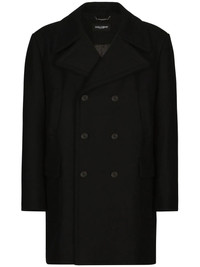 double-breasted wool peacoat Highlights - Virgin wool - Black - Wide notch lapels - Double-breasted button fastening - Long sleeves - Front flap pockets - Mid-length Made in Italy Composition Lining: Rayon 98%, Cotton 2% Outer: Virgin Wool 95%, Nylon 5%