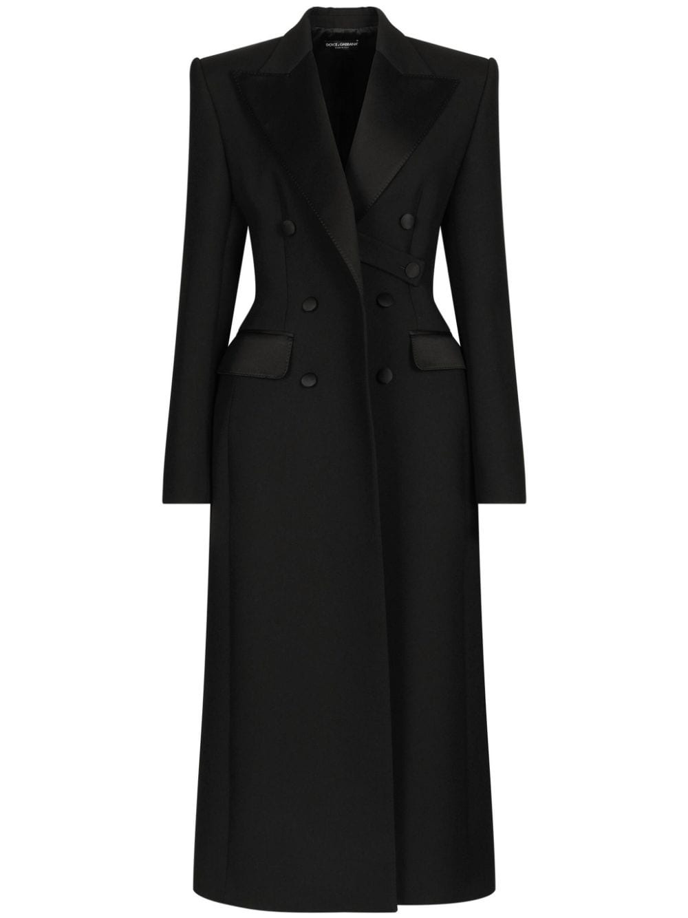 Double-breasted wool gabardine tuxedo coat with padded hips