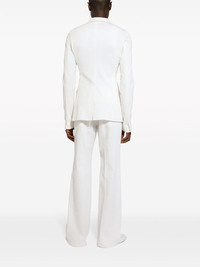 double-breasted crepe blazer Highlights - Optical white - Crepe texture - Notched lapels - Double-breasted button fastening - Long sleeves - Buttoned cuffs - Chest welt pocket - Two front flap pockets - American rear vent - Straight hem Made in Italy Composition Cotton 64%, Viscose 34%, Polyamide 1%, Elastane 1% Washing instructions Read Manufacturer Guidelines