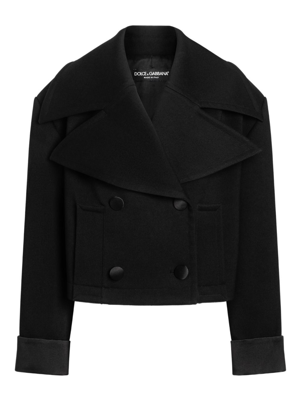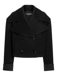 double-breasted cropped jacket Highlights - Black - Wide lapels - Double-breasted button fastening - Long sleeves - Cuffed detail Made in Italy Composition Outer: Virgin Wool 88%, Silk 8%, PVA Sponge 2% Lining: Silk 98%, Spandex/Elastane 8% Washing instructions Read Manufacturer Guidelines