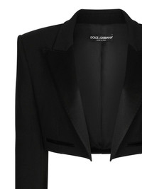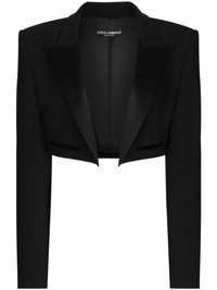 double-breasted cropped jacket Highlights - Black - Virgin wool blend - Gabardine weave - Peak lapels - Long sleeves - Faux pocket detail - Cropped Made in Italy Composition Outer: Virgin Wool 85%, Silk 12%, Polyester 3% Lining: Silk 100%