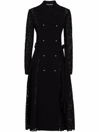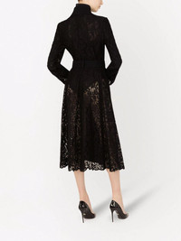 cordonetto-lace belted coat Highlights - Black double-breasted flared coat from dolce & gabbana featuring classic collar, double-breasted button fastening, long sleeves, tied waist and flared hem. Made in Italy Composition Outer: Cotton 35%, Vicuna Wool 30%, Rayon 29%, Nylon 6% Lining: Nylon 100%
