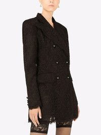 cordonetto-lace double.breasted blazer Highlights - Black cotton-silk blend double breasted lace blazer from dolce & gabbana featuring floral-lace detailing, double-breasted button fastening, notched lapels, two front flap pockets and scallop hem. Made in Italy Composition Lining: Nylon 86%, Polyester 9%, Silk 5% Outer: Cotton 41%, Rayon 39%, Nylon 20%