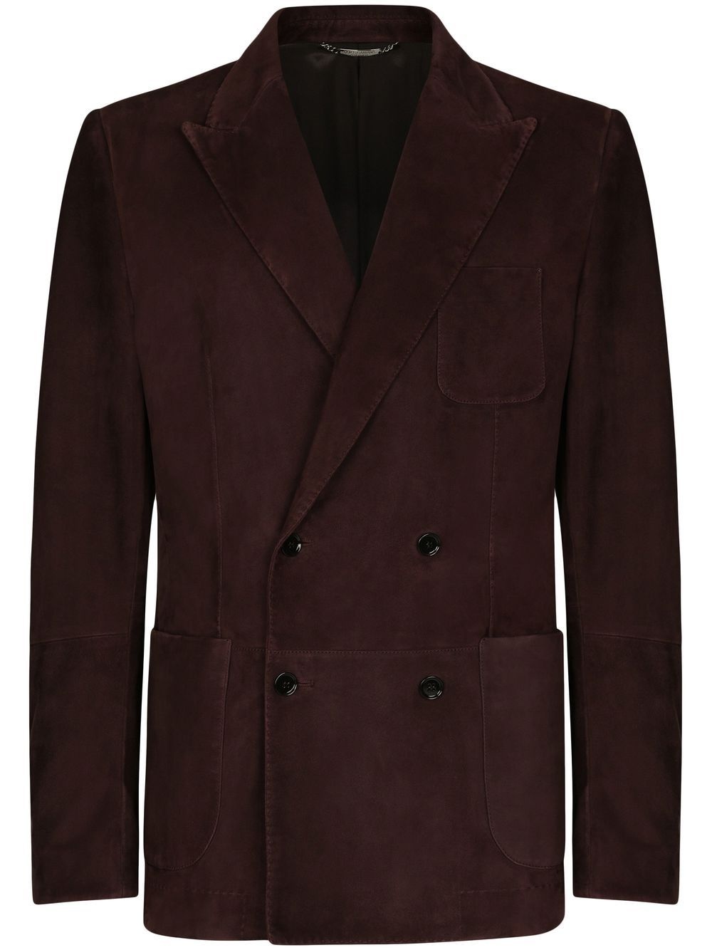 double-breasted suede blazer Highlights - Earth brown - Lambskin - Silk lining - Notched lapels - Double-breasted button fastening - Long sleeves - Chest patch pocket - Two side patch pockets - Straight hem Made in Italy Composition Lambskin 100% Lining: Silk 100% Washing instructions Read Manufacturer Guidelines