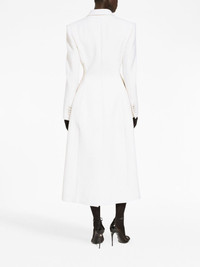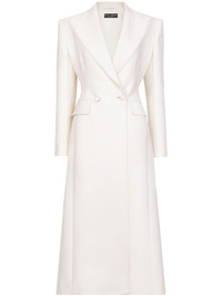 double-breasted long coat Highlights - White - Virgin wool blend - Wide peak lapels - Long sleeves - Double-breasted button fastening - Two front flap pockets - Fitted waistline - Central rear vent - Straight hem - Calf-length Made in Italy Composition Virgin Wool 90%, Nylon 10% SIZE & FIT Measurement SLEEVE LENGTH 29.92 in(76 cm) LENGTH 50.39 in(128 cm) WAIST 29.13 in(74 cm) BUST 33.85 in(86 cm)