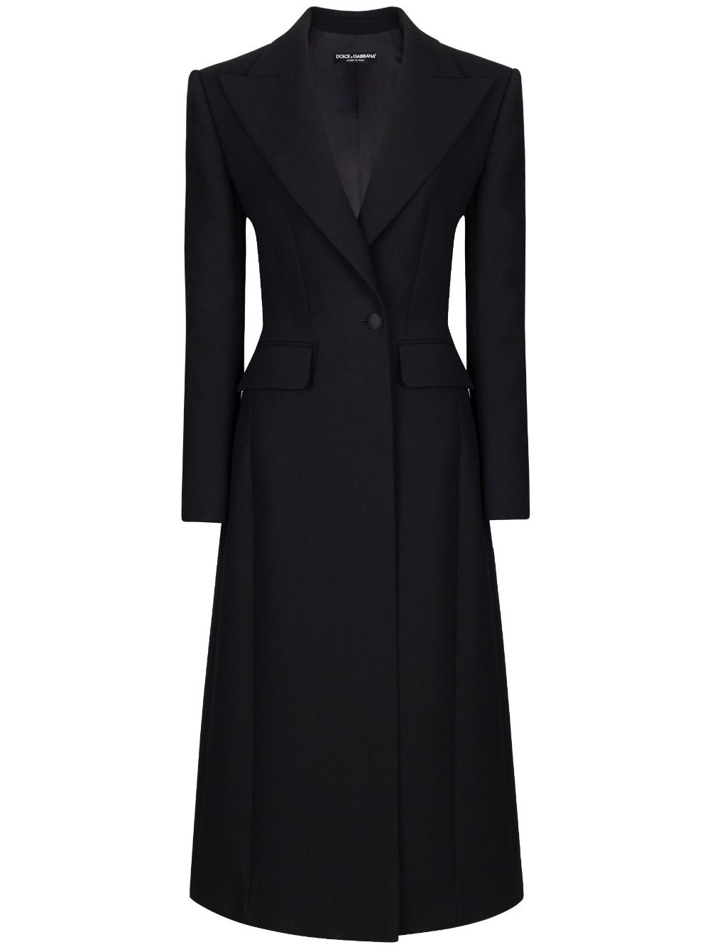 double-breasted long coat Highlights - Black - Virgin wool blend - Wide peak lapels - Long sleeves - Double-breasted button fastening - Two front flap pockets - Fitted waistline - Central rear vent - Straight hem - Calf-length Made in Italy Composition Virgin Wool 90%, Nylon 10% SIZE & FIT Measurement SLEEVE LENGTH 24.4 in(62 cm) LENGTH 50 in(127 cm) WAIST 31.49 in(80 cm)