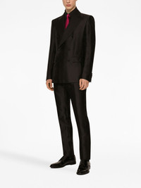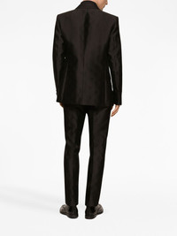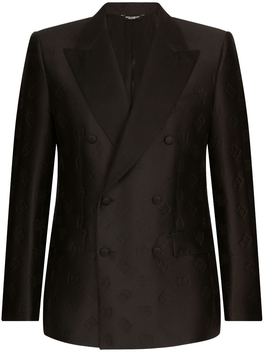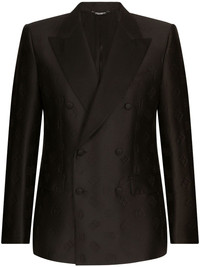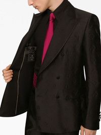 double-breasted monogram-print suit Dolce & Gabbana updates the classic double-breasted suit for AW23 with a monogram print. Crafted from a silk blend, this suit boasts a straight cut. Highlights - Black - Silk blend - Monogram print - Peak lapels - Double-breasted button fastening - Buttoned cuffs - Long sleeves - Two front flap pockets - Straight leg - Pressed crease - Two side slit pockets Made in Italy Composition Inner: Silk 85%, Rayon 15% Outer: Polyester 40%, Acetate 37%, Silk 23%