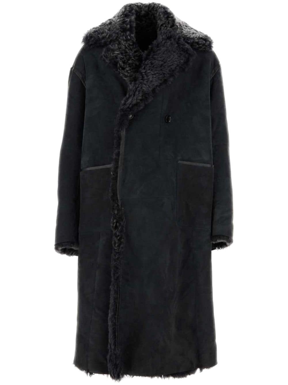 double-breasted suede coat Highlights - Black - Suede - Sheepskin/shearling - Notched lapels - Double-breasted press-stud fastening - Long sleeves - Two side patch pockets - Straight hem Made in Italy Composition Lining: Sheep Skin/Shearling 100% Outer: Suede 100%