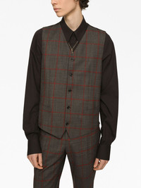 double-breasted three-piece suit Highlights - Brown/red - Plaid check pattern - Vest: - V-neck - Front button fastening - Sleeveless - Asymmetric hem - Blazer: - Peak lapels - Double-breasted button fastening - Long sleeves - Buttoned cuffs - Chest patch pocket - Two side flap pockets - English rear vents - Straight hem - Trousers: - Belt loops - Pressed crease - Concealed front fastening - Tailored cut - Two side slit pockets - Two rear button-fastening jetted pockets Made in Italy Composition Polyester 53%, Virgin Wool 43%, Elastane 4%