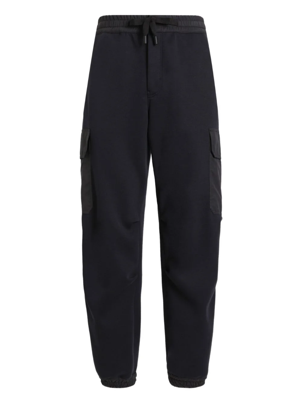 double-faced track pants Highlights - Dark blue - Elasticated drawstring waistband - Side slit pockets - Side cargo pockets - Rear logo patch Made in Italy Composition Cotton 88%, Polyamide 6%, Polyester 6% Washing instructions Read Manufacturer Guidelines