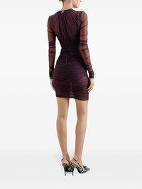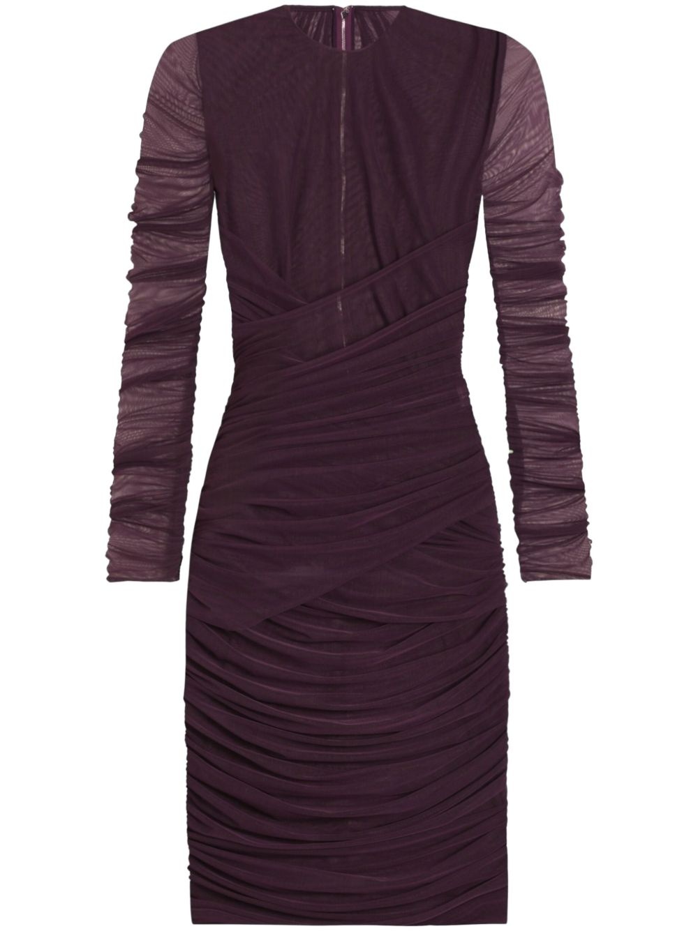 draped-detail mini dress Highlights - Purple - Semi-sheer construction - Bodycon design - Draped detailing - Rear zip fastening - Round neck - Long sleeves - Layered details - Straight hem - Thigh-length Made in Italy Composition Outer: Polyamide 82%, Spandex/Elastane 18% Lining: Polyamide 82%, Spandex/Elastane 18%