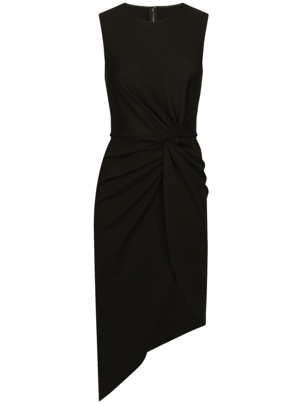 draped sleeveless midi dress Highlights - Jet black - Tonal stitching - Draped detailing - Round neck - Rear zip fastening - Sleeveless - Asymmetric hem - Mid-length Made in Italy Composition Rayon 91%, Nylon 5%, Spandex/Elastane 4% Washing instructions Read Manufacturer Guidelines