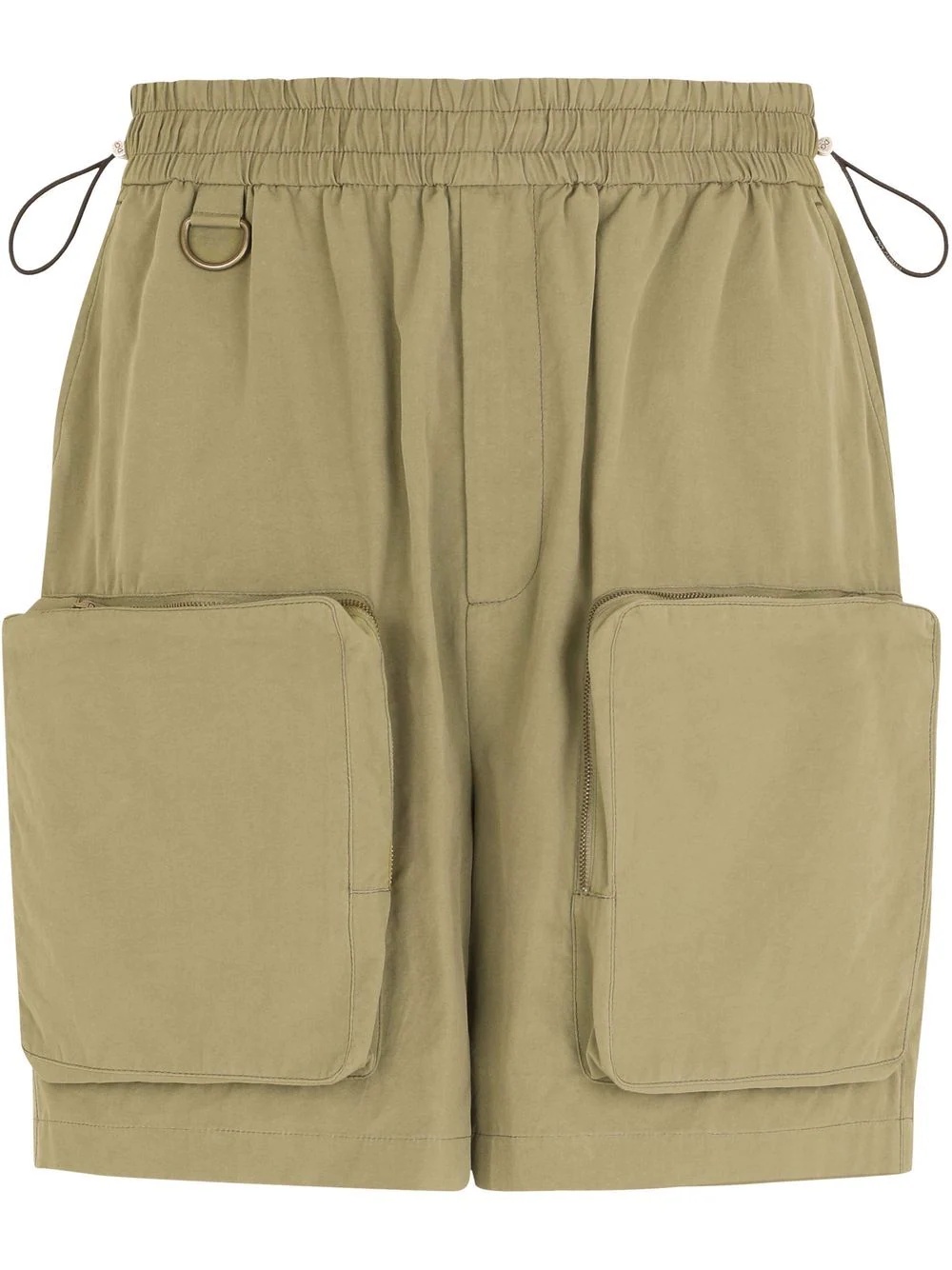 drawstring cargo shorts Highlights - Pale green - Cotton - D-ring findings - Elasticated drawstring waistband - Two side slash pockets - Front zip fastening pockets - Two rear welt pockets - Above-knee length Made in Italy Composition Cotton 95%, Nylon 5%