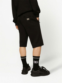 logo-tag track shorts These track shorts from Dolce & Gabbana provide a casual look for everyday wear. The pair are presented in a soft cotton construction for comfort. Highlights - Black - Cotton blend - Jersey knit - Logo plaque - Elasticated drawstring waistband - Slip pockets to the sides - Thigh-length Made in Italy Composition Cotton 100% SIZE & FIT FittingInformation Designed for relaxed fit, offering a comfortable loose fit over the leg Adjust this piece’s waistband to your preference using the drawstring Made from a midweight non-stretch fabric, this piece offers minimal elasticity when worn Washing instructions Read Manufacturer Guidelines