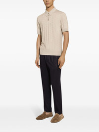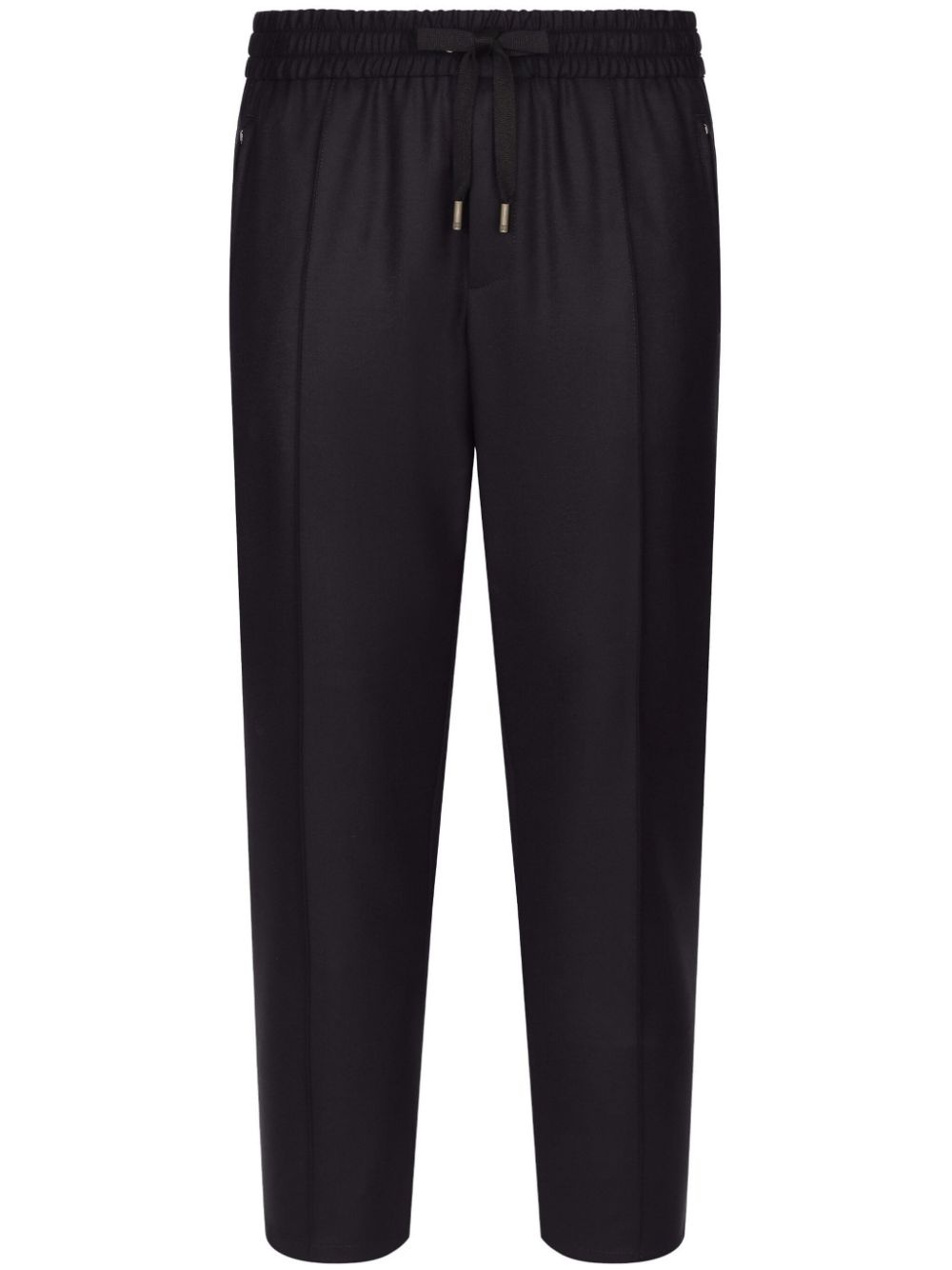 drawstring-waist tapered trousers Highlights - Midnight blue - Elasticated drawstring waistband - Pleat detailing - Logo patch to the rear - Slip pockets to the sides - Rear zip-fastening pocket - Pressed crease - Tapered leg Made in Italy Composition Virgin Wool 100%