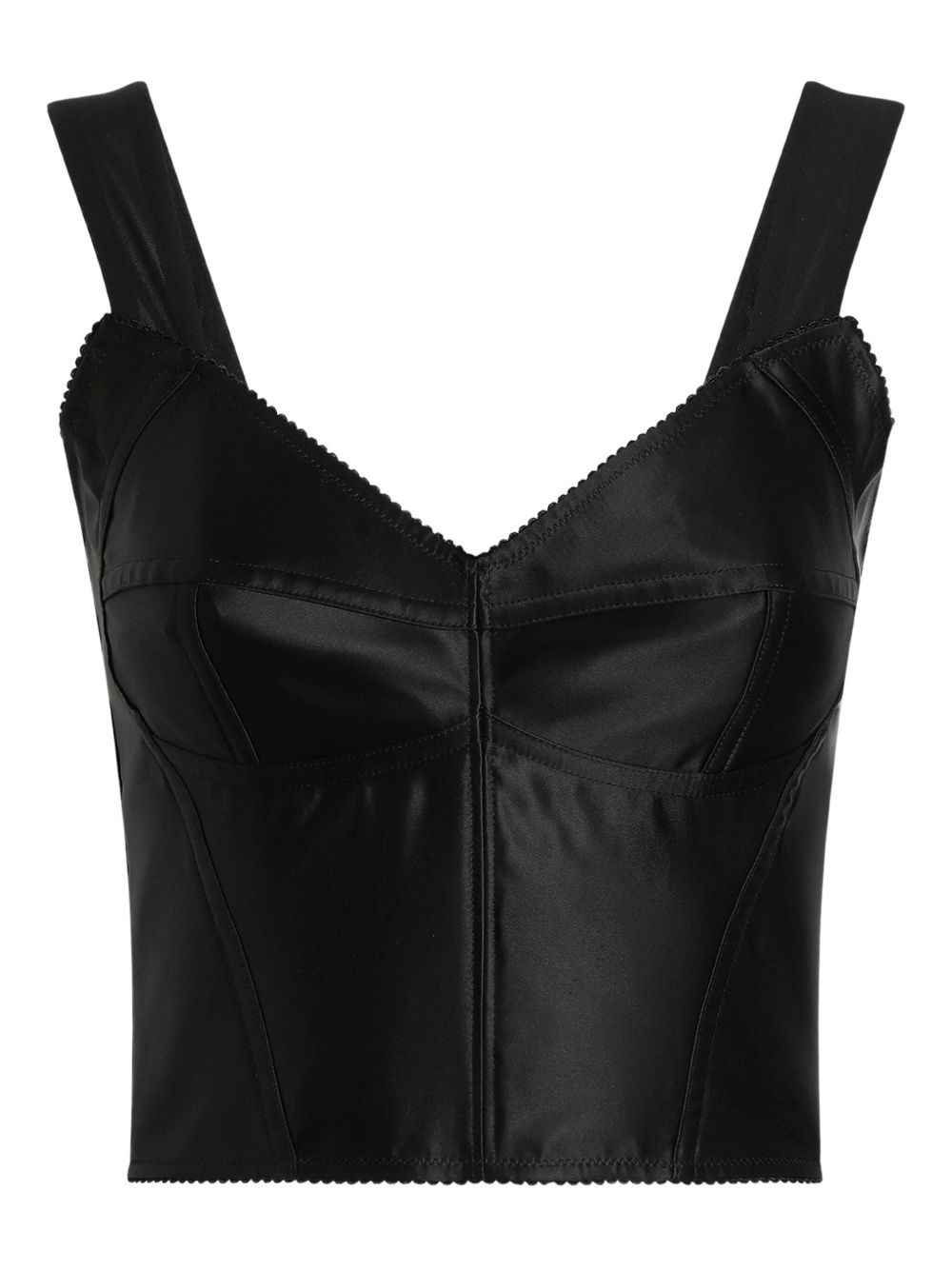 elastic satin top Highlights - Black - Deep neckline - Thick shoulder straps - Tailored seams - Scalloped detailing Made in Italy Composition Outer: Polyester 70%, Polyamide 25%, Spandex/Elastane 5% Lining: Cotton 100%