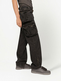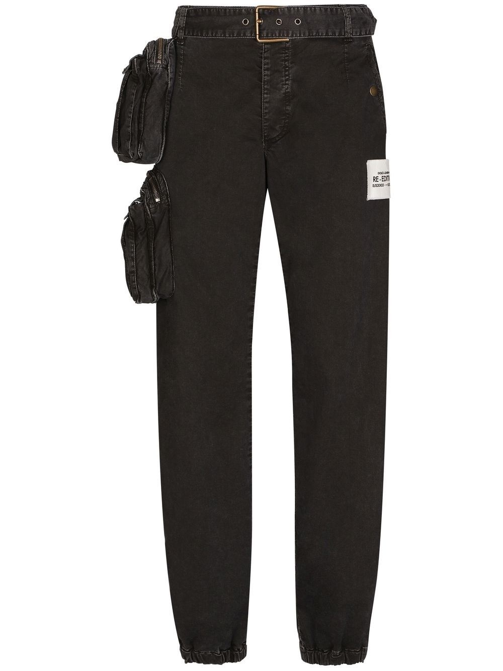 pouch-detail cargo trousers Highlights - Smoky black - Stretch-cotton - Denim - Concealed front fastening - Belted waist - Multiple cargo pockets - Side slit pocket - Logo patch to the side - Elasticated ankles Made in Italy Composition Cotton 98%, Elastane 2% Washing instructions Read Manufacturer Guidelines