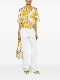 elongated high-rise jeans Highlights - White - Cotton - Denim - High-rise - Wide leg - Long length - Front button and zip fastening - Belt loops - Two front patch pockets - Two rear patch pockets Made in Italy Composition Cotton 100%