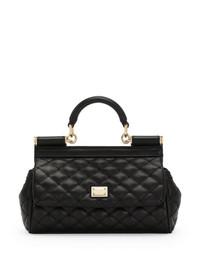 small Sicily tote bag Highlights - Black - Lambskin - Diamond-quilted detailing - Single top handle - Logo plaque - Adjustable detachable shoulder strap - Foldover top with magnetic fastening - Main compartment - Internal slip pocket - Metal feet - Gold-tone hardware - This piece comes complete with a protective dust bag. Made in Italy Composition Outer: Lambskin 100% Lining: Cotton 90%, Lambskin 10% SIZE & FIT Measurement DEPTH 2.36 in(6 cm) HEIGHT 5.11 in(13 cm) WIDTH 7.48 in(19 cm)