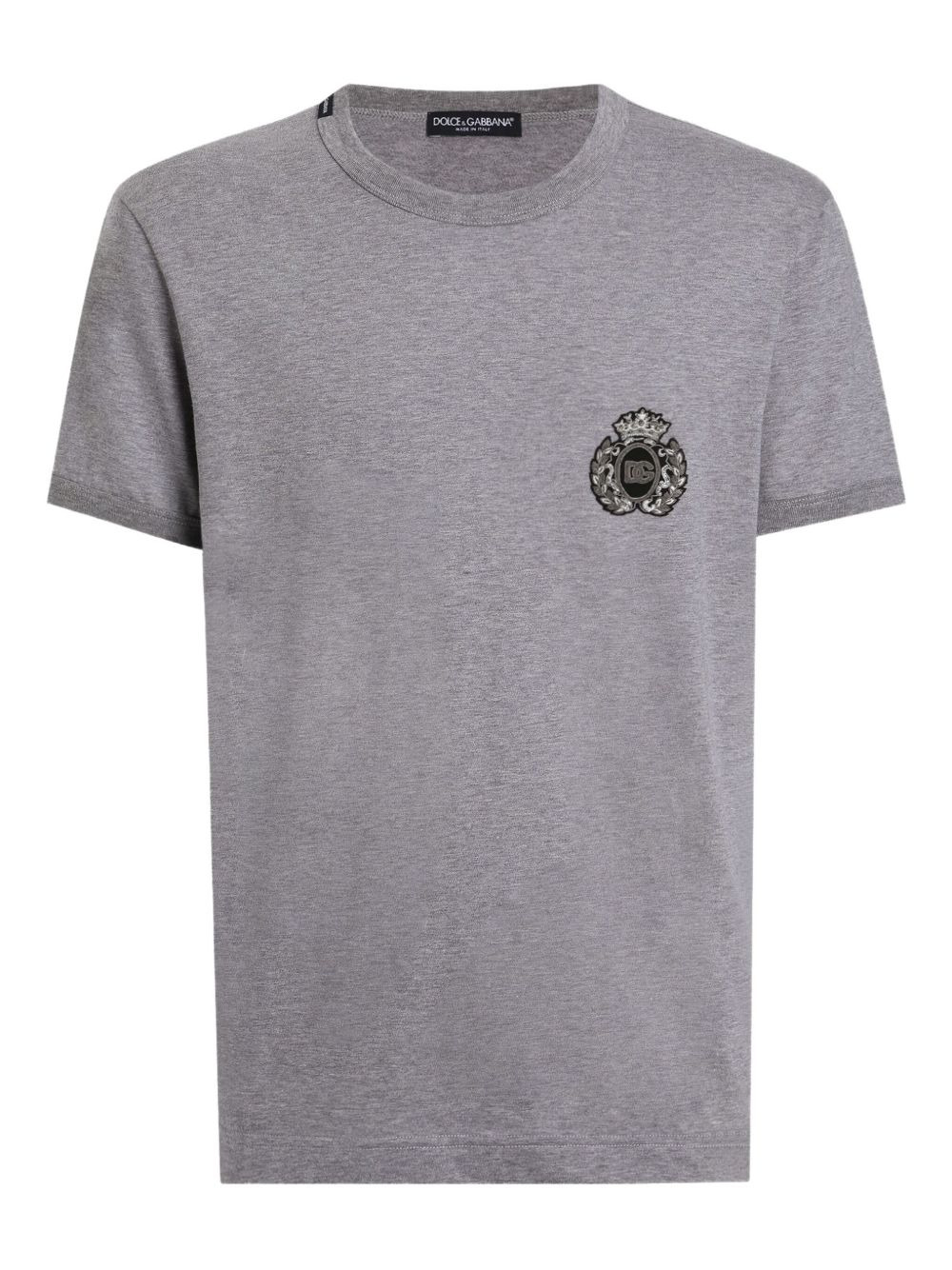 embellished crew-neck T-shirt Highlights - Grey - Crew neck - Short sleeves - Embroidered emblem - Metallic embellishments - Cotton Made in Italy Composition Cotton 100% Washing instructions Read Manufacturer Guidelines