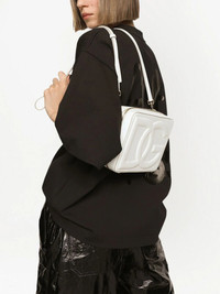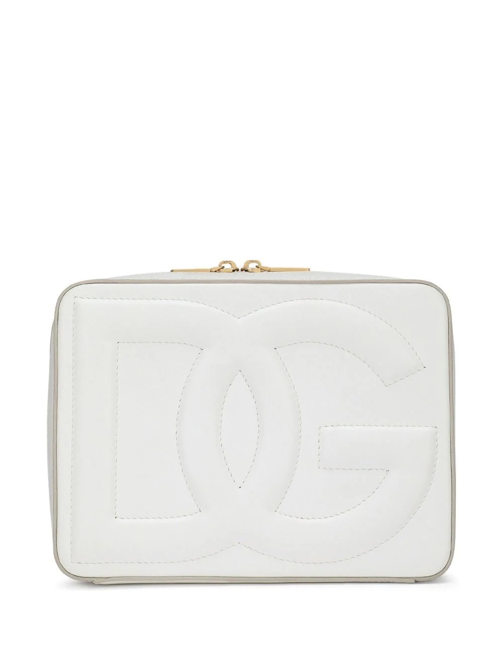 medium DG Logo camera bag Highlights - White - Calf leather - Embossed logo to the front - Square shape - Gold-tone hardware - Adjustable detachable shoulder strap - Top zip fastening - Main compartment - Internal zip pocket - Slip pocket to the rear - This piece comes complete with a protective dust bag. Made in Italy Composition Outer: Calf Leather 100% Lining: Polyester 56%, Calf Leather 20%, Polyurethane 16%, Rayon 5%, Nylon 2%, Elastane 1% SIZE & FIT Measurement DEPTH 2.16 in(5.5 cm) WIDTH 7.87 in(20 cm) HEIGHT 6.29 in(16 cm)