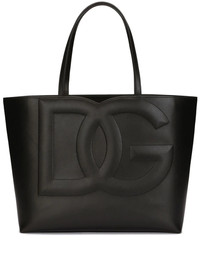 medium DG Logo tote bag Highlights - Black - Calf leather - Embossed logo to the front - Two long top handles - Open top - Internal zip-fastening pocket - Main compartment - Logo-print lining Made in Italy Composition Outer: Calf Leather 100% Lining: Polyester 100% SIZE & FIT Measurement DEPTH 5.51 in(14 cm) WIDTH 13.77 in(35 cm) HEIGHT 11.81 in(30 cm)