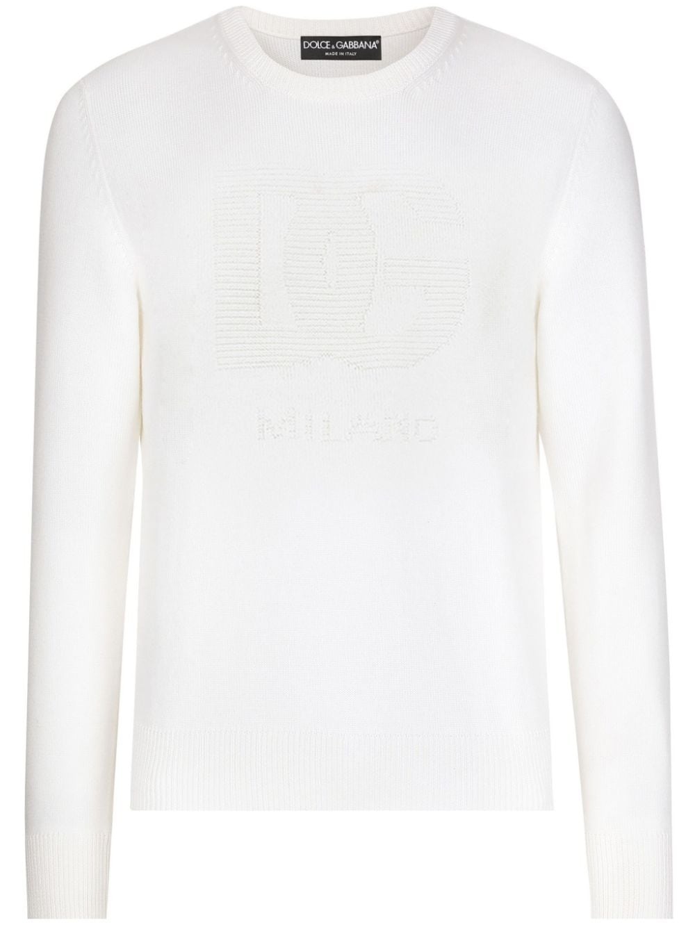 crew-neck sweater Highlights - Off-white - Virgin wool - Fine knit - Embossed logo to the front - Crew neck - Long sleeves Made in Italy Composition Virgin Wool 100%