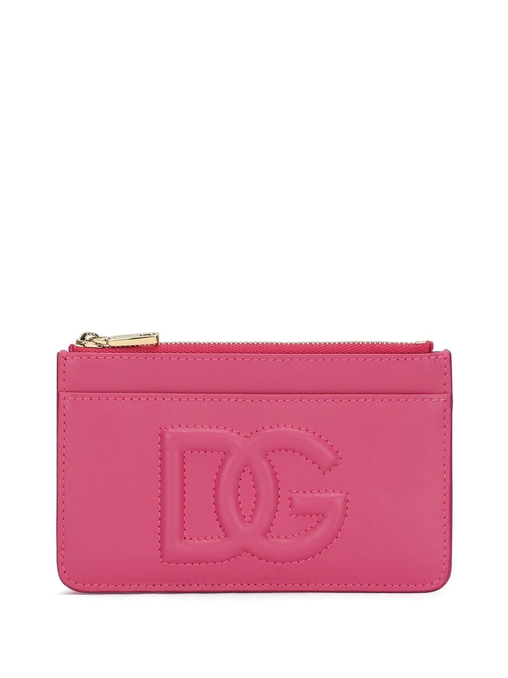 DG-logo embossed zip-up card holder Highlights - Pink - Calf leather - Embossed logo to the front - Top zip fastening - Card slots - Gold-tone hardware Made in Italy Composition Lining: Rayon 100% Outer: CALFSKIN 100%