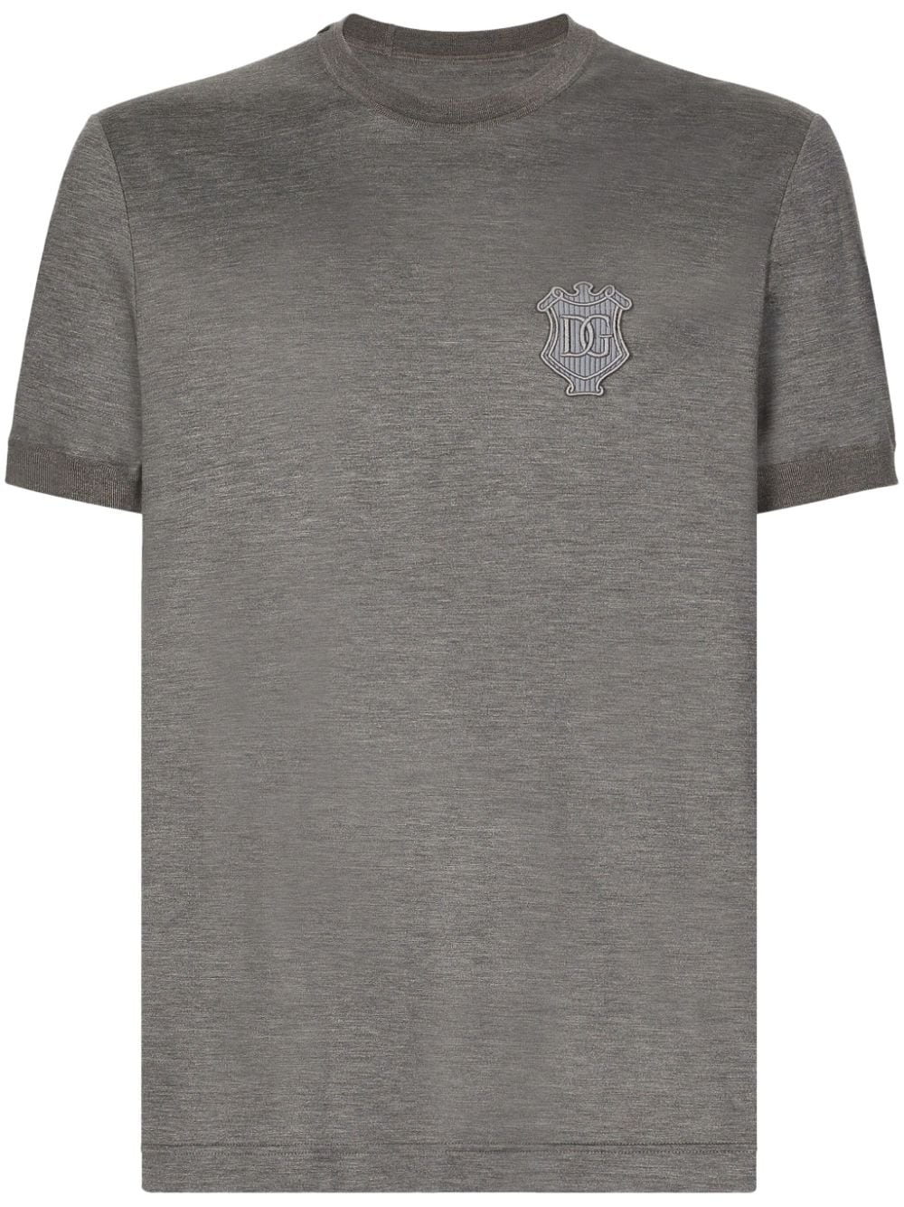 embroidered logo t-shirt Highlights - Grey - Silk-cotton blend - Crew neck - Embroidered logo at the chest - Short sleeves - Straight hem Made in Italy Composition Silk 60%, Cotton 40%