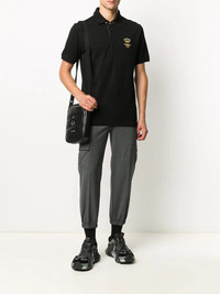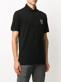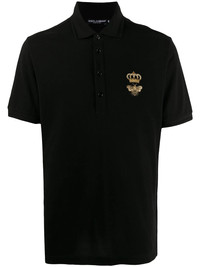 embroidered pique polo shirt Have you heard the latest buzz? Dolce & Gabbana's cotton-blend polo shirt has been designed with a gold bee and crown logo embroidery at the chest. Wearing this you'll be fashion royalty. Highlights - Black - Cotton-blend - Polo collar - Front button placket - Short sleeves - Side slits - Straight hem - Ribbed cuffs - Gold bee and crown logo embroidery Made in Italy Composition Cotton 95%, Polyester 5% SIZE & FIT Model measurements Height 6 ft 2 in(1.87 m) Bust/Chest 37.79 in(96 cm) Hips 37.79 in(96 cm) Waist 30.31 in(77 cm) FittingInformation Designed for a relaxed fit, this polo shirt offers comfort and movement Made from a midweight non-stretch fabric, this piece offers minimal elasticity when worn This piece fits true to size – take your usual size Measurement CHEST 38.18 in(97 cm)