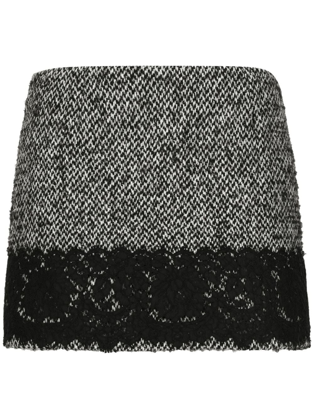 Fantasy (Not Print) skirt Highlights - Grey - Wool blend - Herringbone - Lace overlay - A-line - Concealed rear zip fastening Made in Italy Composition Outer: Wool 47%, Cotton 24%, Acrylic 14%, Polyester 6%, Polyamide 5%, Alpaca 3%, Viscose 1% Lining: Silk 98%, Spandex/Elastane 2%