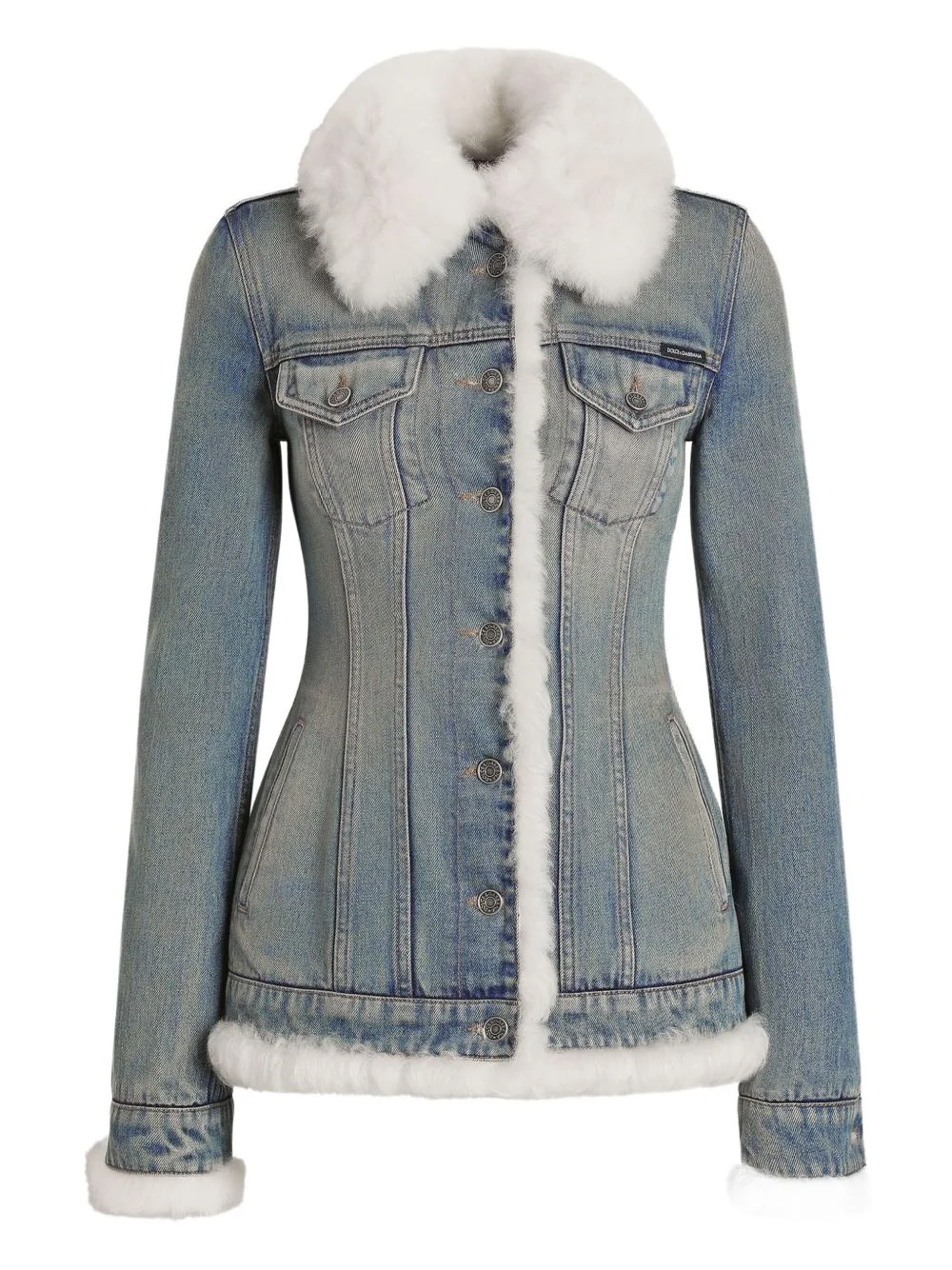 faux-fur denim jacket Highlights - Blue/white - Faux-fur trim - Button fastening - Chest flap pockets - Two side pockets - Long sleeves - Washed denim - Cotton Made in Italy Composition Cotton 100% Washing instructions Read Manufacturer Guidelines