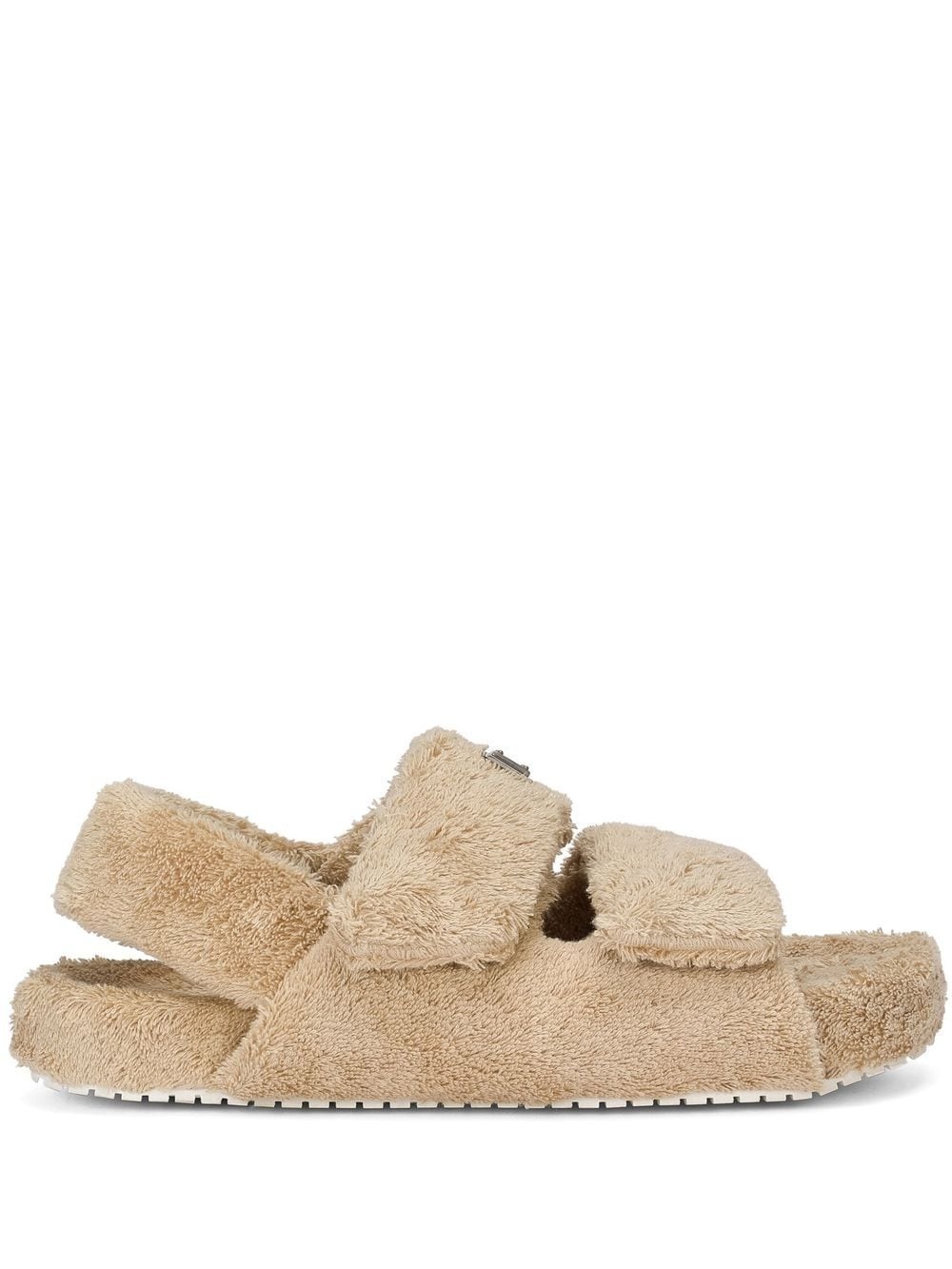 faux-fur sandals Highlights - Beige - Cotton blend - Logo patch to the front - Open toe - Front touch-strap fastening - Slingback strap - Flat rubber sole Made in Italy Composition Sole: Rubber 100% Outer: Cotton 100% Lining: Cotton 87%, Polyester 10%, Elastodiene 3%