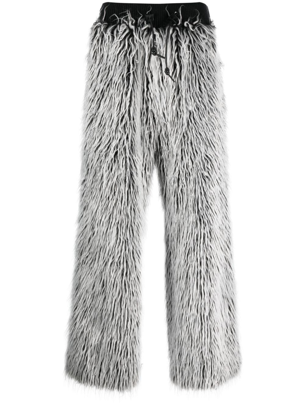 faux-fur tailored-cut trousers Highlights - Black/white - Faux-fur design - Tailored cut - Elasticated drawstring waistband - Concealed front zip fastening - Two side inset pockets - Rear welt pocket - Straight hem Made in Italy Composition Outer: Virgin Wool 96%, Modacrylic 54%, Polyester 22%, Acrylic 21%, Elastane 4%, Bos Taurus 3% Lining: Viscose 100% SIZE & FIT Model measurements Height 6 ft 0 in(1.84 m) Bust/Chest 35.82 in(91 cm) Hips 37 in(94 cm) Waist 28.34 in(72 cm) FittingInformation Designed with a wide leg, offering a loose and roomy fit The elasticated waist allows for a comfortable fit Made from a midweight non-stretch fabric This piece fits true to size – take your usual size Washing instructions Dry Clean Only