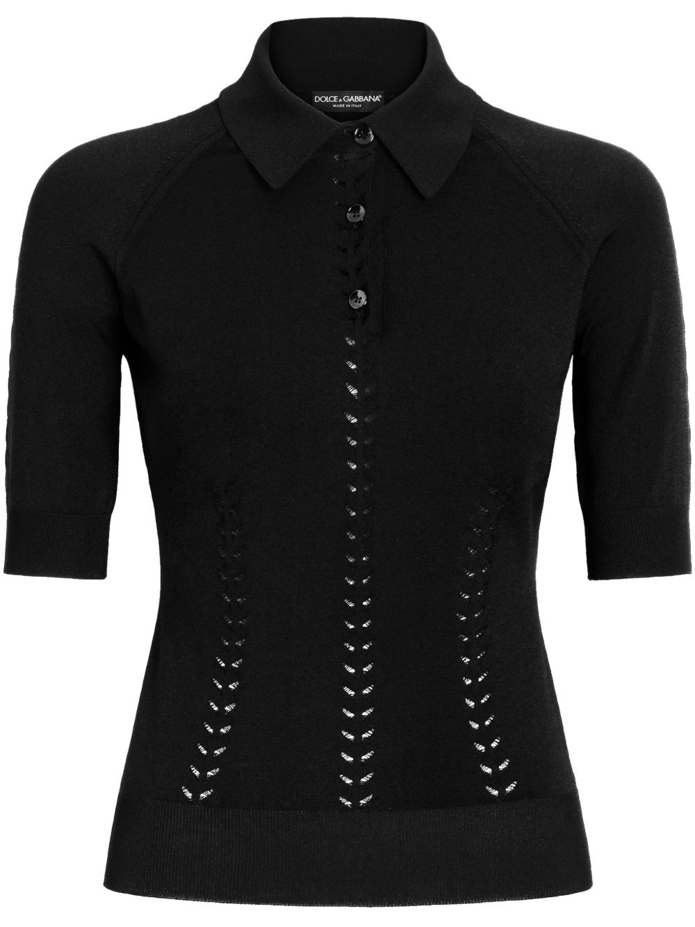DNA fine-knit top Highlights - Black - Short front button fastening - Classic collar - Short sleeves Made in Italy Composition Viscose 79%, Polyamide 13%, Polyester 8%