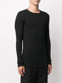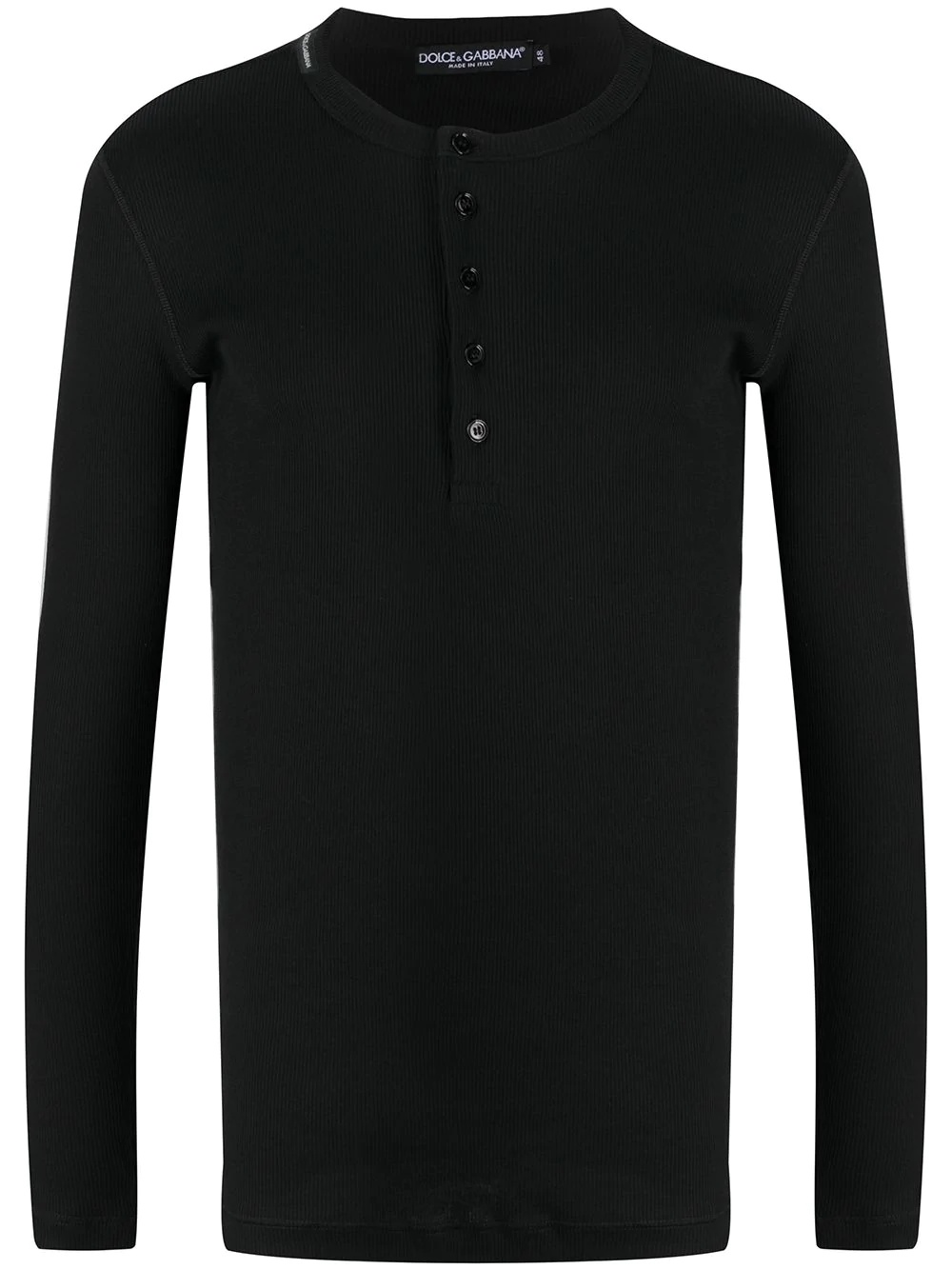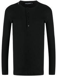 fine-rib cotton T-shirt Minimalists, rejoice. This fine-ribbed long-sleeve T-shirt is the piece that you've been waiting for. Dolce & Gabbana has got you covered. Highlights - Black - Cotton - Crew neck - Front button fastening - Fine ribbed - Long sleeves - Logo-patch at the neck Made in Italy Composition Cotton 100% SIZE & FIT Model measurements Height 6 ft 1 in(1.86 m) Bust/Chest 35.43 in(90 cm) Hips 35.43 in(90 cm) Waist 29.92 in(76 cm) FittingInformation This piece fits true to size. We recommend you get your regular size Cut for a slim fit Made with a mid-weight fabric Measurement CHEST 34.25 in(87 cm) Washing instructions Machine Wash