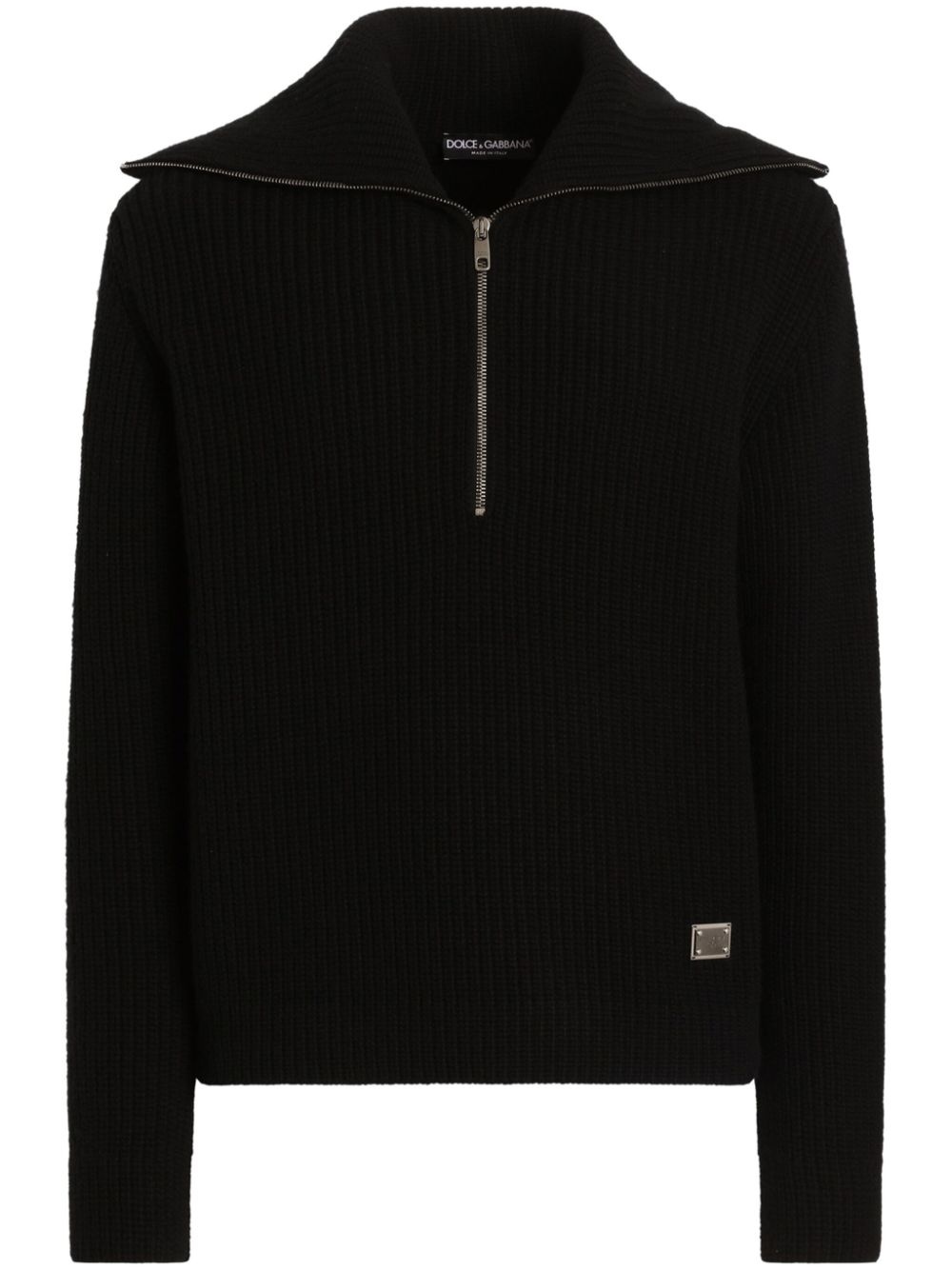 fisherman's-knit sweater Highlights - Black - Half front zip fastening - Silver-tone logo plaque - High neck - Long sleeves Made in Italy Composition Wool 100%