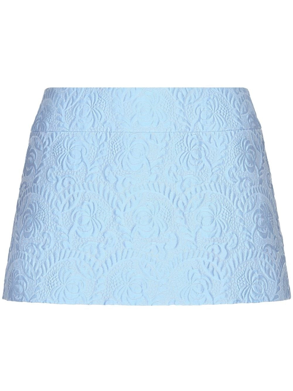 DNA fitted brocade mini skirt Highlights - Sky blue - Brocade effect - Mid-rise - Concealed rear zip fastening - Thigh-length - Straight hem Made in Italy Composition Outer: Cotton 64%, Polyester 23%, Silk 13% Lining: Silk 92%, Spandex/Elastane 8% SIZE & FIT Measurement HIPS 39.37 in(100 cm) LENGTH 13.77 in(35 cm) WAIST 30.7 in(78 cm) Washing instructions Read Manufacturer Guidelines