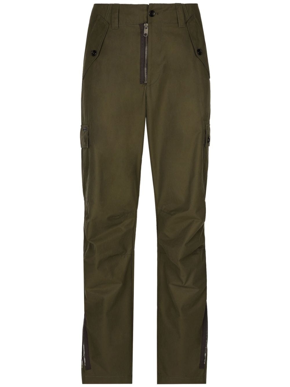 flared cargo trousers Highlights - Olive green - Stretch-cotton - Belt loops - Front button and zip fastening - Two side flap pockets - Two side cargo pockets - Cuff zips - Flared hem Made in Italy Composition Cotton 64%, Polyamide 36%