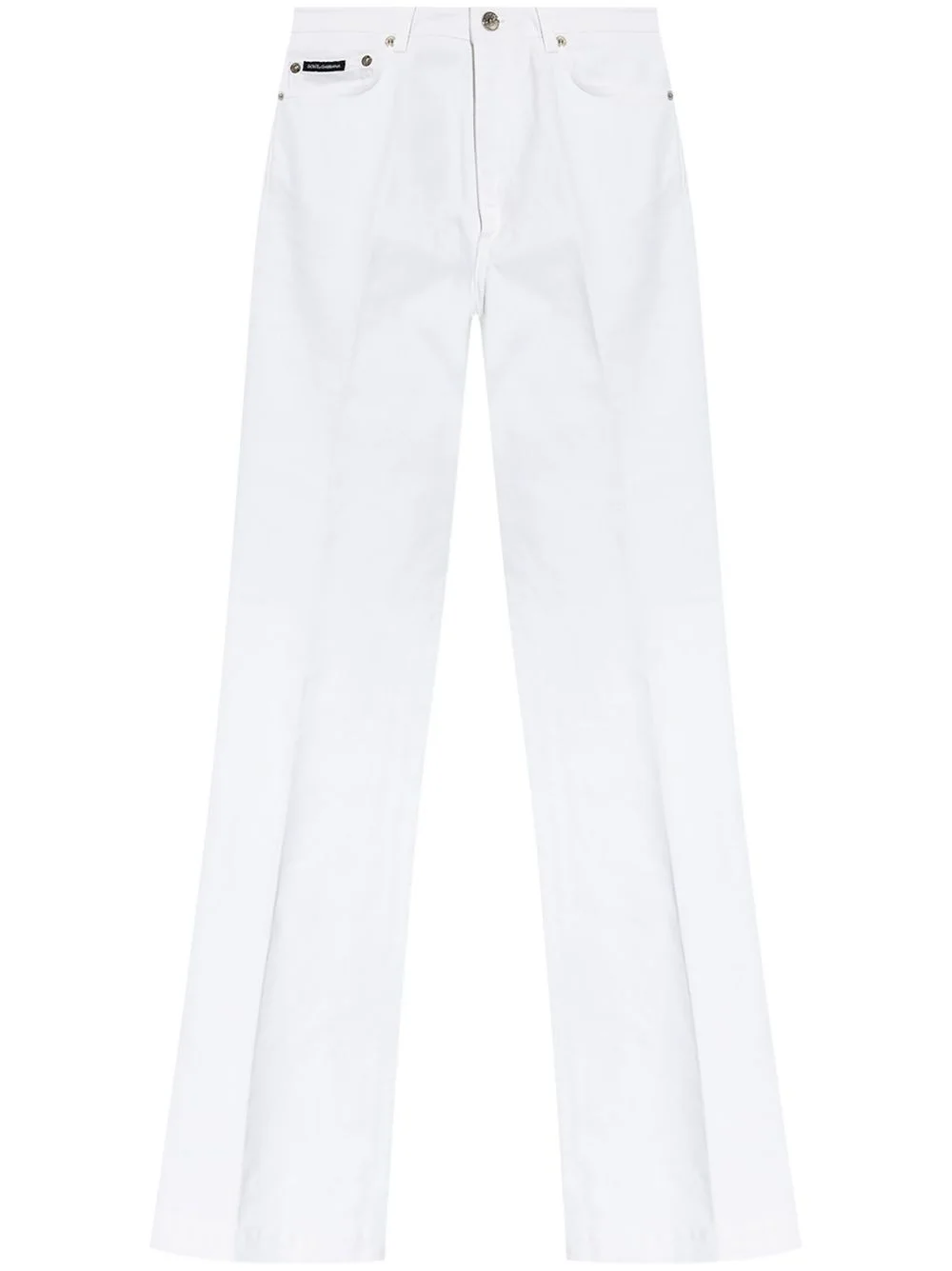 flared denim trousers Highlights - White - Cotton - Flared design - Classic five pockets - Front button and zip fastening - Belt loops Made in Italy Composition Cotton 100% SIZE & FIT Measurement FRONT RISE 11.61 in(29.5 cm) INSIDE LEG 35.43 in(90 cm) HIPS 42.91 in(109 cm) WAIST 31.88 in(81 cm)