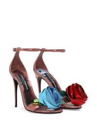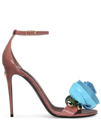 105mm Keira floral-applique sandals The rosettes at the toes of these pink patent-leather Dolce & Gabbana sandals are inspired by the ‘60s Flower Power movement and accompanied by sizable crystals at the sides. Highlights - Pink - Calf leather - Gold-tone logo lettering - Single toe strap - Floral applique - Branded insole - Buckle-fastening ankle strap - High stiletto heel Made in Italy Composition Lining: Goat Skin 80%, Calf Leather 20% Outer: Calf Leather 100% Sole: Calf Leather 100%